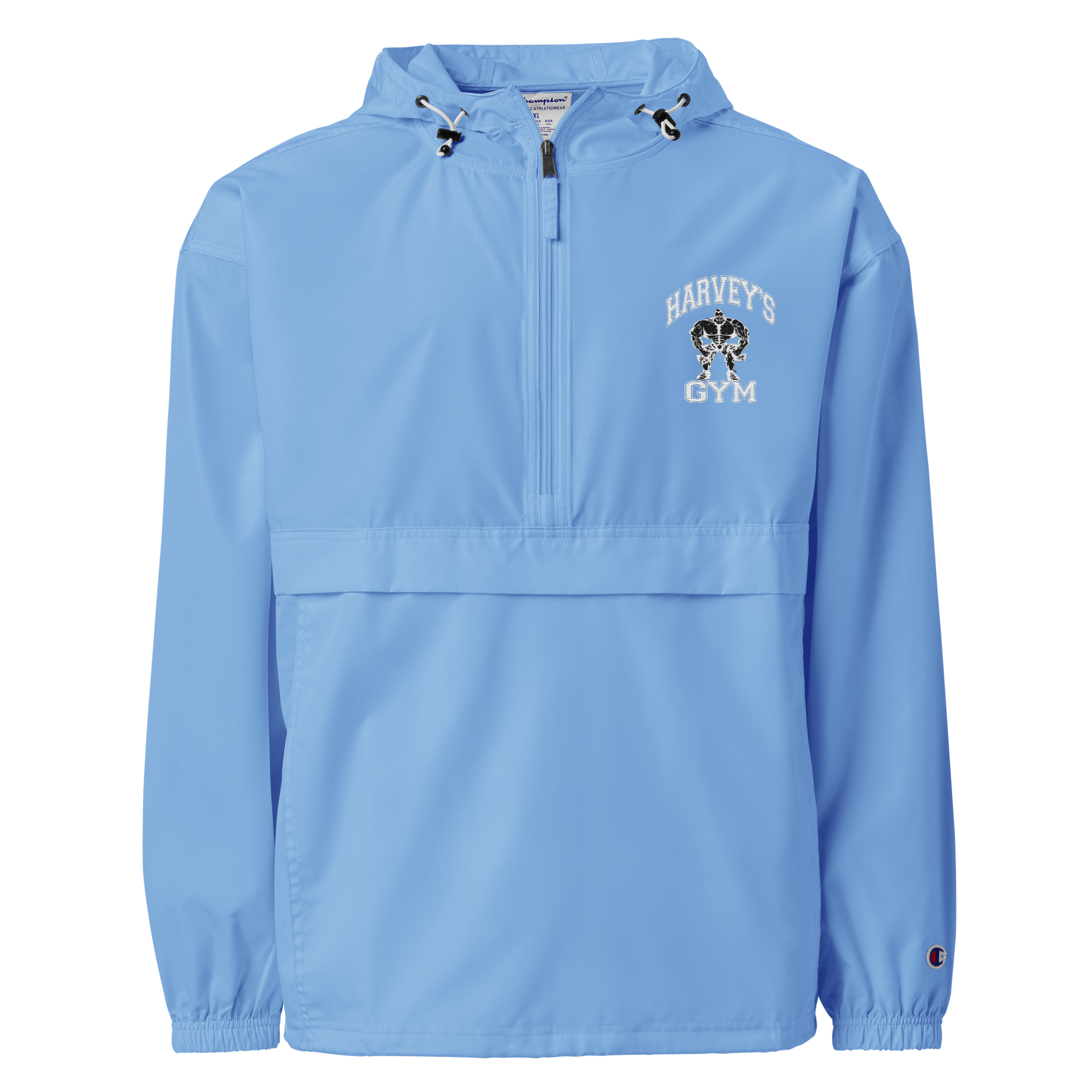 Protect yourself from the elements with this Champion packable jacket. This wind and rain resistant polyester jacket with a detailed embroidery design has a practical hood, front kangaroo pocket, and zipped pouch pocket which you can pull out and use to scrunch the jacket into for convenient storage.